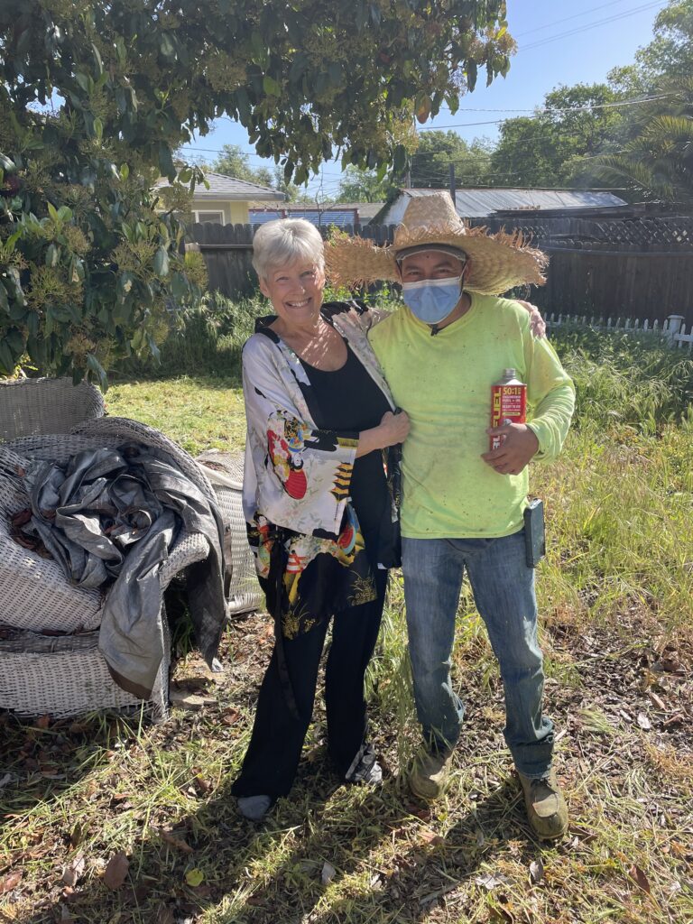 Beverly isn’t able to do yard work like she used to. The weeds in her front yard and back yard had gotten out of control and her wish was to have someone clear the weeds and haul away an old broken patio set. Beverly was so excited to have her yard cleaned up so she can enjoy it again worry free.