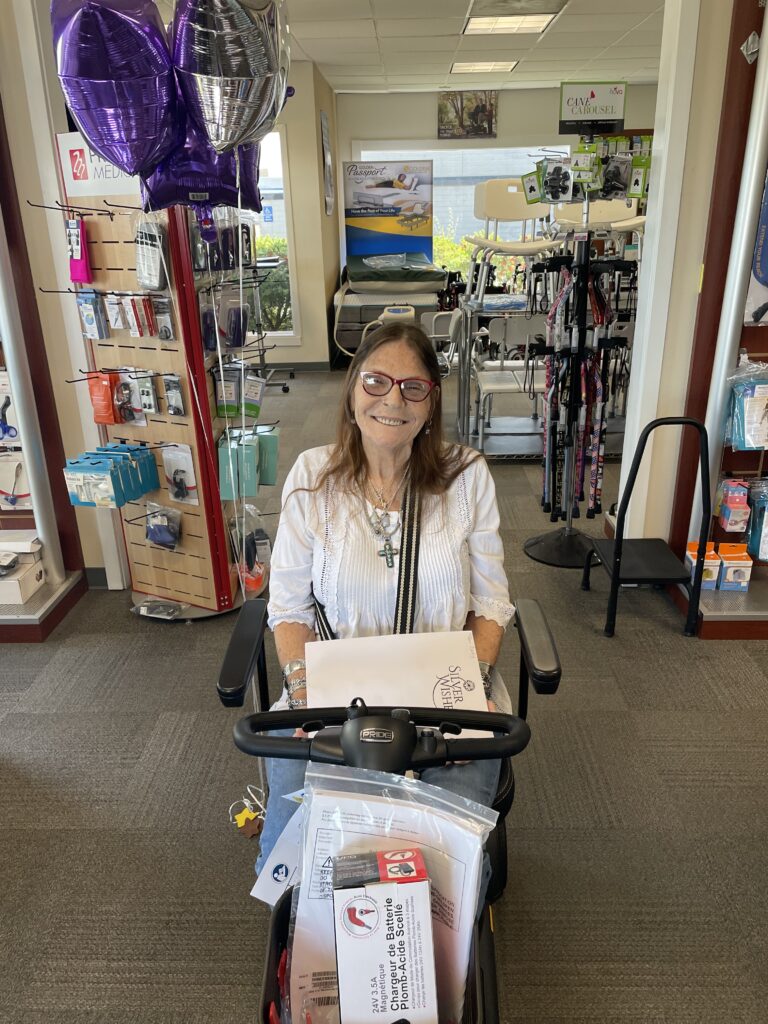 Wishes can change a life. The last several years have been extremely hard for Teri with the loss of family members and major health issues, so she just stays in her room all day watching tv. She needs both knees replaced but other health issues are keeping her from having it done. A wish come true for a mobility scooter, has made Teri excited to get out and enjoy life again, especially going on “walks” with her daughter. Thank you for bringing Teri some joy and changing her outlook on life.