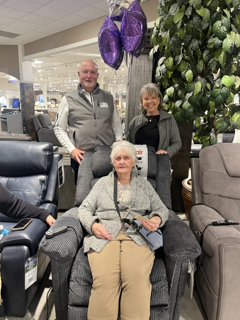 Delores beamed with joy as she said, “Today feels like Christmas!” After a terrible accident, Delores has been living in chronic pain and getting out of her chair has become increasingly difficult. Our friends at RC Willey, have a great selection and provided a memorable shopping experience as Delores was like Goldilocks getting to choose a power lift recliner that fit her “just right” and will provide her comfort and the ability to get up on her own again.