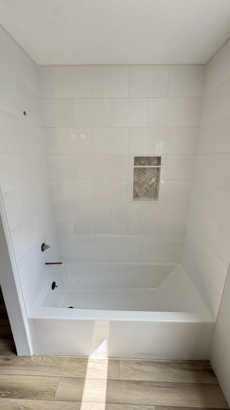 Gail loves tools and home improvement projects. Unfortunately, after her husband passed away, she spent some time away visiting family and came home to a flooded house. Gail found doing the repairs herself therapeutic until she tore her rotator cuff, limiting her activities. Her wish was to have her shower/tub surround tiled since she couldn’t lift them on her own. Thank you, M-10 Builders for the beautiful work you did and for getting her vanity moved into place as well. Your support has helped Gail overcome an obstacle and let her know that she is known and valued.