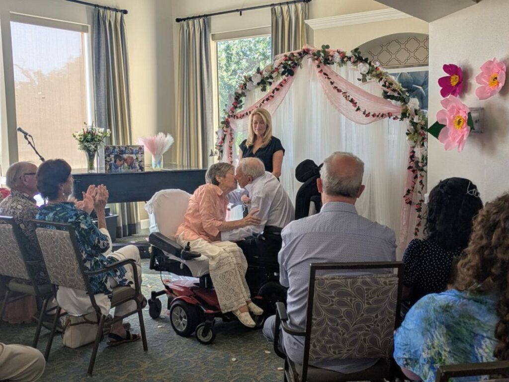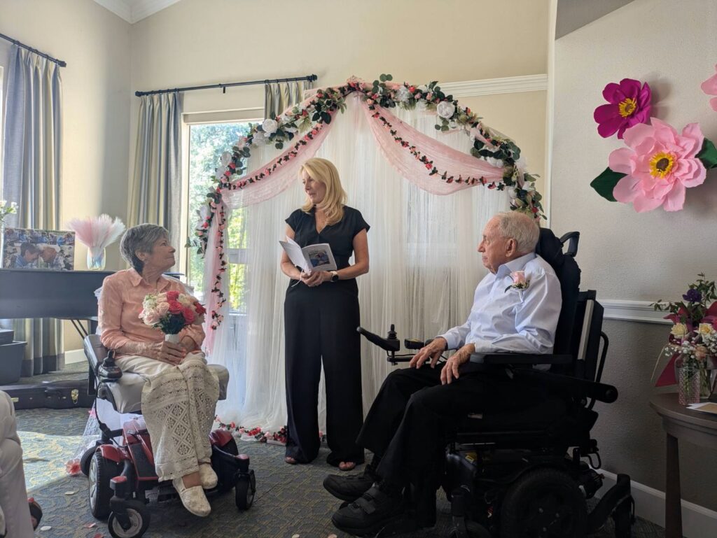 Silver Wishes was honored to be asked to be a part of a very special wish for a wedding for Ginger and Richard. This sweet wish was another example of the community coming together to bring joy and change a couple’s outlook on life. Silver Wishes was asked to help with flowers and a one-night honeymoon, while the food, cake and photographer were donated by others. Special thank you to Ambience Floral Design & Gifts for donating the bouquet and boutonniere and Embassy Suites by Hilton Sacramento Riverfront Promenade for donating a night stay at your hotel. Congratulations Richard and Ginger! May your love for each other continue to shine.