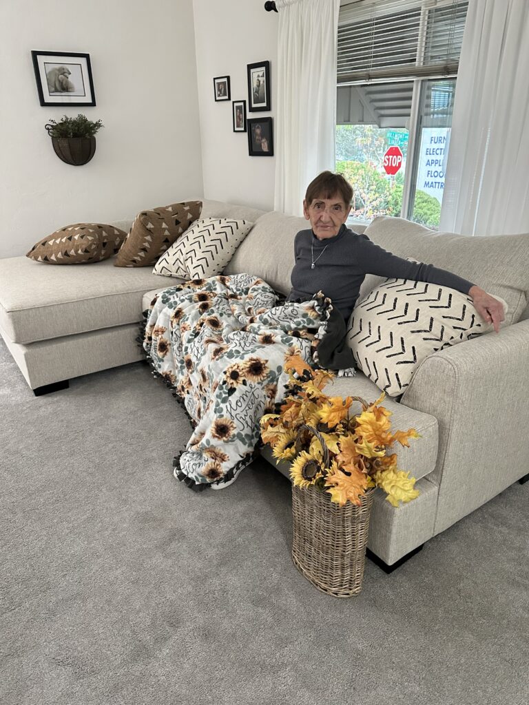 Today, thanks to the generosity of our donors and our partnership with RC Willey, Marilyn has a beautiful new couch that brings her comfort, joy, and a feeling of being truly cared for. She is over the moon and more comfortable inviting others over to visit.