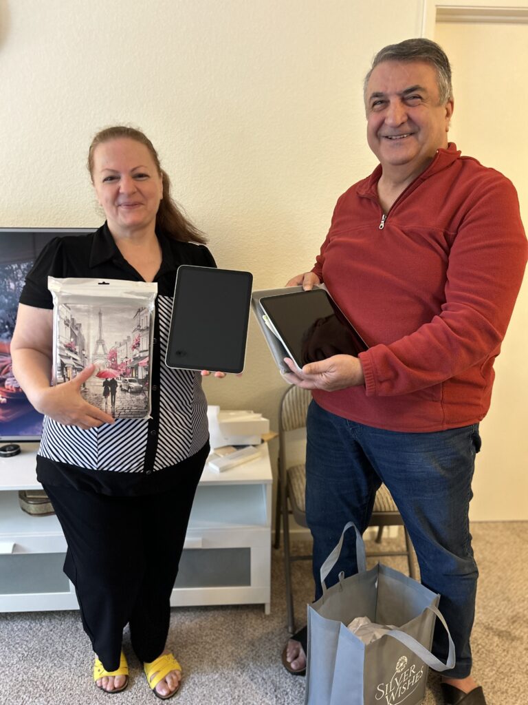 We’re thrilled to share Mohammad and Soghra’s wish reveal. After immigrating from Iran and recently earning their U.S. citizenship, learning English has become an important part of their daily lives. With limited income and limited access to technology, it hasn’t been easy. Thanks to our generous supporters, both received iPads and accessories to help them continue their English studies and stay connected to family and friends. This wish is more than a device – it’s a bridge to confidence, connection and community. Special thanks to Rouzbeh, our volunteer translator ensuring our recipients feel known and valued