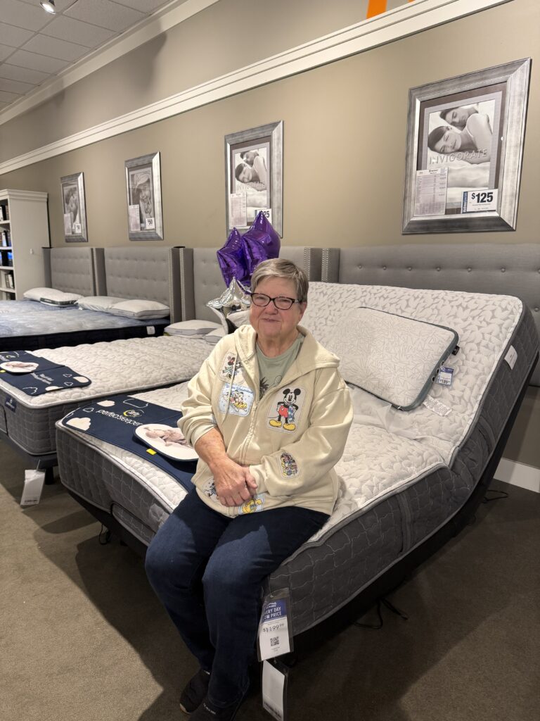 At 79 years old, Nancy received her first-ever brand-new mattress. After years of living with pain from open-heart surgery and ongoing knee, back, and hip issues, a good night’s sleep felt out of reach. Nancy is always putting others first and now it’s our turn take care of Nancy. Thanks to our generous supporters, Nancy can now rest in comfort. We’re also grateful for our partnership with RC Willey for their incredible care and customer service in helping her find the perfect mattress. Every senior deserves comfort, dignity, and rest.